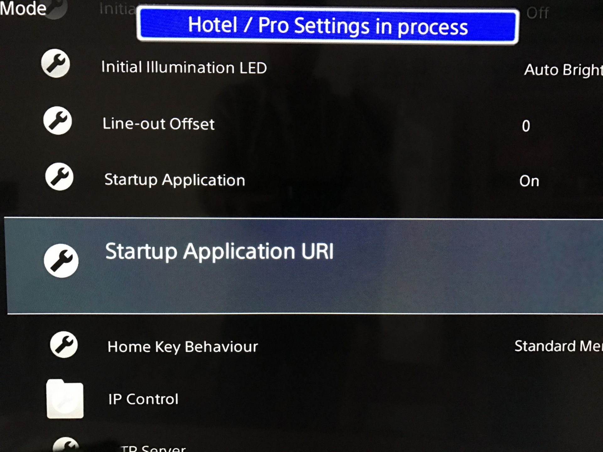 TV-en vil nå aktivere modus som automatisk vil starte opp infoskjermen når TV slås på. For å teste kan det være at du må slå TV-en av og på med fjernkontrollen etter "Hotel / Pro mode" ble slått på.