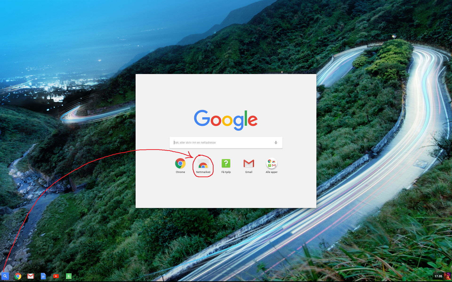 Dersom du ikke finner "Nettmarked" kan du trykke på "Alle apper".